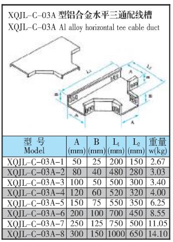 本文將會在XQJL-C-03A型鋁合金水平三通配線槽的型號、用途、規格、重量等方面做詳細的說明與介紹,江蘇海馳電氣制造有限公司作為是專業的XQJL-C-03A型鋁合金水平三通配線槽生產廠家,為您選購適合自己的產品做一定的指導是必要的。